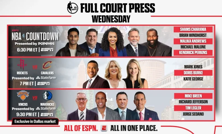Mike Breen will call the action, supported by analysts Richard Jefferson and Tim Legler. Jorge Sedano will be the courtside reporter, providing real-time insights. The Mavericks’ game will have exclusive coverage in the Dallas market.