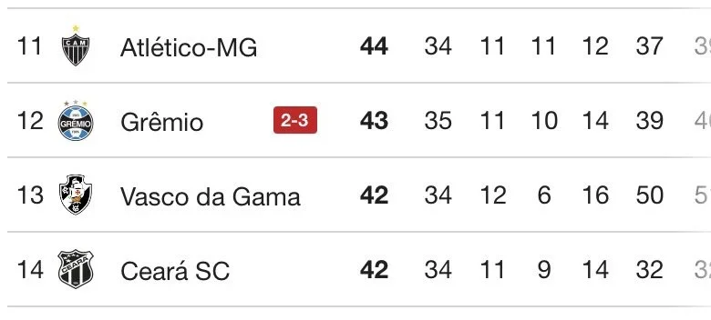 The recent match in the 35th round of the Brazilian league saw Grêmio suffer a loss. This defeat has opened up a path for Vasco, who can leapfrog past Grêmio even with a draw against Bahia.
