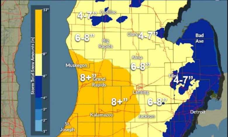 Forecasts indicate that snow accumulation will be gradual statewide, especially along the West Michigan lakeshore, where higher totals are expected. Blowing and drifting snow might severely reduce visibility and create challenging travel conditions.