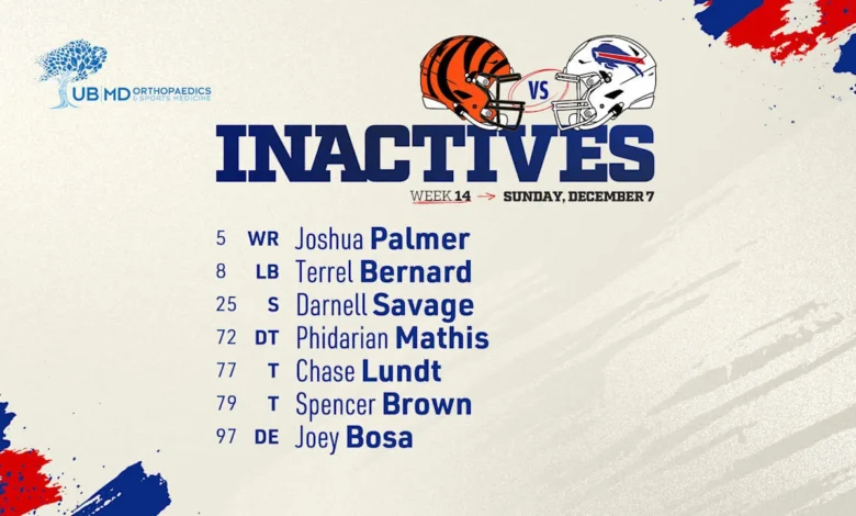 The Buffalo Bills have announced their inactive players for the Week 14 matchup against the Cincinnati Bengals. Several key players will not be participating in this critical game.