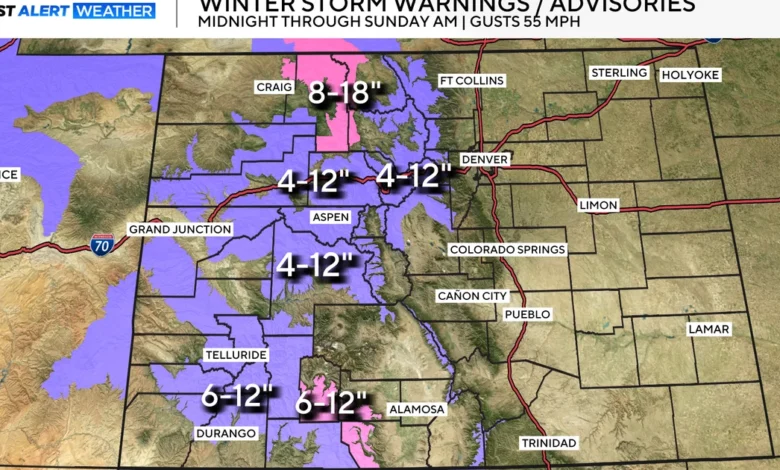 - Forecasts predict snowfall of 4 to 12 inches in the Colorado mountains, with Rabbit Ears Pass and Mt. Zirkel potentially receiving up to 18 inches.