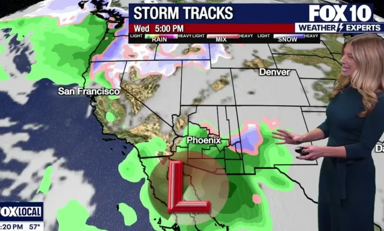 The initial storm arrived in Arizona on Wednesday, dropping temperatures in the Valley to a chilly 60 degrees—marking the coldest day of the season thus far. Rain started in southern Arizona early in the day, with light showers reported in the Valley later in the afternoon.