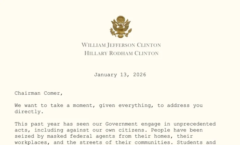 The recent personal letter from Bill and Hillary Clinton to Chairman Comer highlights significant concerns regarding the state of governance in the United States. Dated January 13, 2026, the letter addresses numerous alarming developments over the past year.