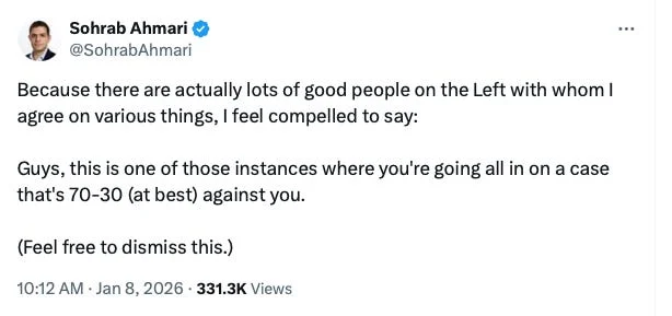 - From January 9-12, YouGov/The Economist found that 50% of respondents viewed a recent shooting by an ICE agent as unjustified.