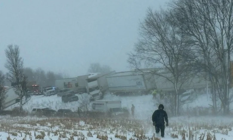 US Snowstorm Strands Motorists in 100-Vehicle Pile-Up