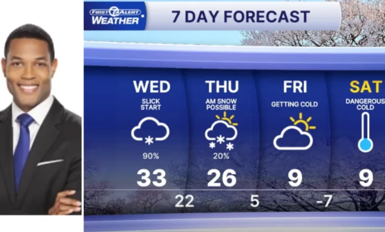 | Friday | Cold, potential for lake-effect snow | Single digits (8°-9°) | -5° to -10° |