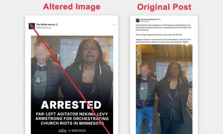 The White House’s recent post featuring a digitally altered photo of protester Nekima Levy Armstrong raises significant questions about the ethics of visual representation in political communication. While the original image portrayed Armstrong with a neutral expression during her arrest for protesting against U.S. Immigration and Customs Enforcement (ICE) at a Minnesota church, the White House’s version depicted her in distress, seemingly sobbing. This deliberate manipulation not only serves as a tactic to denounce Armstrong as a “far-left agitator” but also reveals a larger strategy of misrepresentation that undermines public trust in governmental narratives.