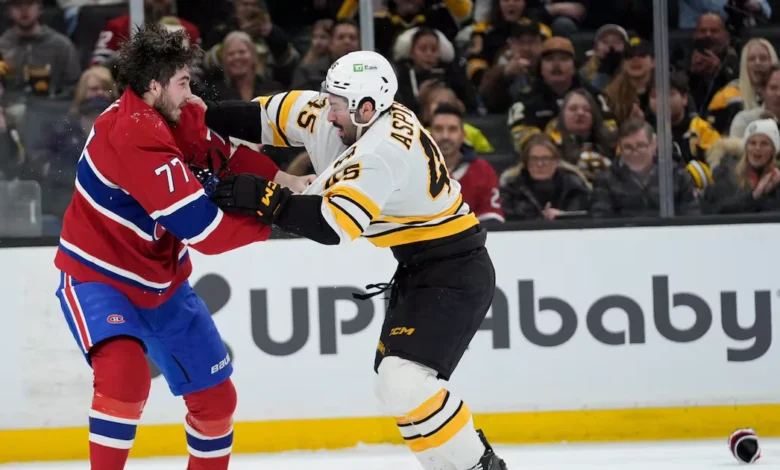 In this matchup, Dach was positioned on the fourth line alongside teammates Jake Evans and Zachary Bolduc. With under five minutes remaining in the first period, he made his presence known by engaging physically in a confrontation with Jonathan Aspirot of the Bruins.