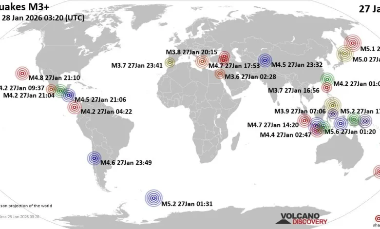 Global Earthquake Summary for Tuesday, January 27, 2026