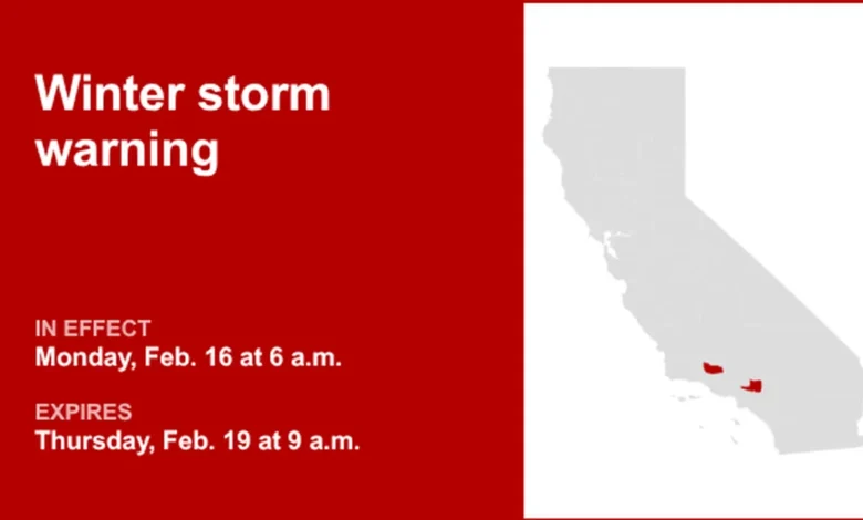 The National Weather Service (NWS) has issued a winter storm warning for several regions in Southern California, specifically Northern Ventura County and Eastern San Gabriel Mountains. This warning begins Monday at 6 a.m. and extends until Thursday at 9 a.m.