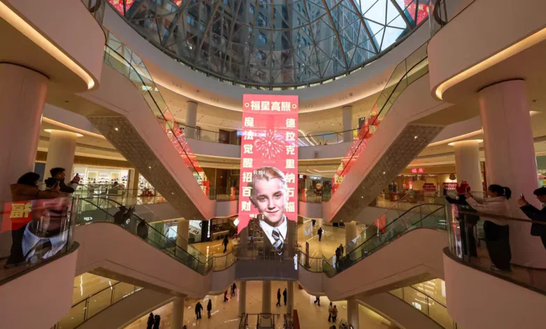 In China, giant posters featuring Tom Felton, the actor who portrays Draco Malfoy, are displayed in shopping malls. These colorful visuals have emerged as a viral sensation on social media platforms, where fans share photographs and illustrations of the character.