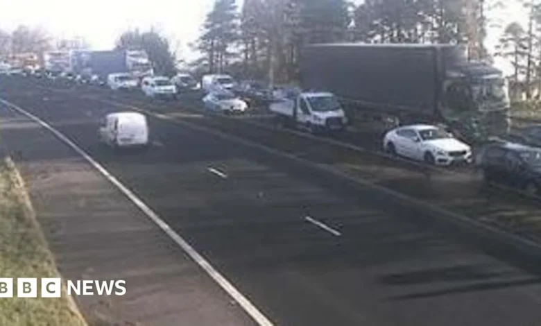 Motorists faced significant delays on the M80 motorway in central Scotland due to a police incident. The southbound section of the motorway, starting from junction seven at Haggs, was shut down early in the morning due to concerns for an individual.
