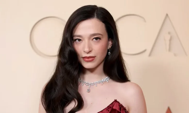 Mikey Madison Stuns on Oscars Red Carpet in Deep Red Gown with Slit