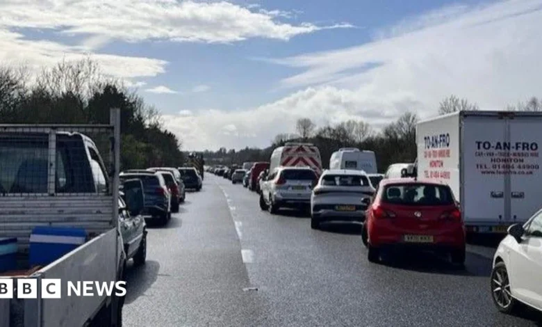 - The southbound carriageway of the M5 was closed at junction 28.