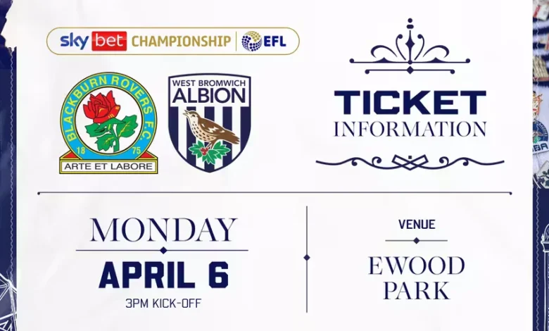 Blackburn Rovers have increased their ticket allocation for the upcoming Easter Monday match against West Bromwich Albion. The game is scheduled to kick off at 3 PM.