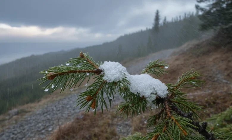 The weather in northwestern Hungary has taken a significant turn, with temperatures dropping sharply on Thursday. Rainy and windy conditions have led to a growing need for umbrellas and raincoats across the region. At the top of Kendig Peak in the Kőszegi Mountains, temperatures have approached freezing, causing snowflakes to mix with the rainfall.