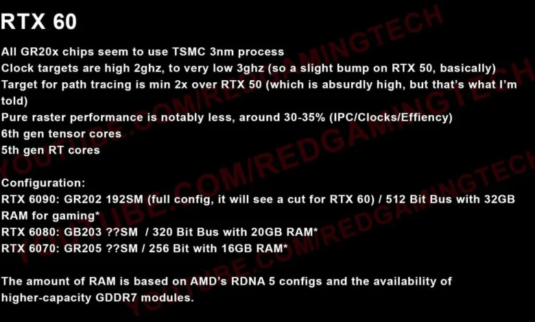 Expected to launch within a two-year cadence, the GeForce RTX 60-series will not adopt a sub-2 nm nanosheet node but will instead utilize a variant of TSMC’s 3 nm FinFET process. This allows for impressive GPU clock speeds, projected to range between high 2 GHz and low 3 GHz, improving upon the existing “Blackwell” architecture.