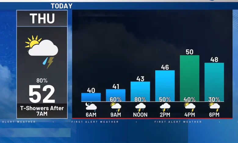 Scattered Showers and Storms Cool Thursday: Rusty’s First Alert Forecast