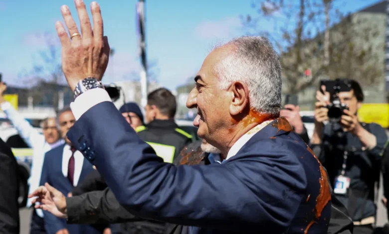 Protester Throws Red Liquid at Reza Pahlavi in Germany Visit