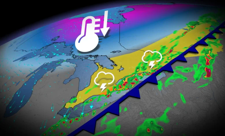 Rain is expected to accompany the front, with the possibility of thunderstorms. By Wednesday and Thursday, temperatures are likely to fall sharply, with some locations north of the Greater Toronto Area (GTA) struggling to reach 10–12°C.