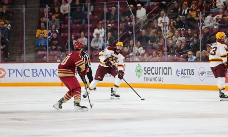 The Gophers welcomed back veteran defenseman Leo Gruba, after he missed the previous game against Michigan Tech. However, the defense struggled early on, allowing Boston College’s Will Vote to score the opening goal just minutes into the first period.