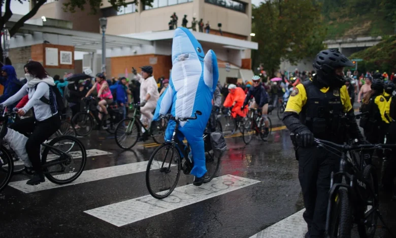 Cyclists Brave Portland’s Wet Weather in ICE Protest Parade