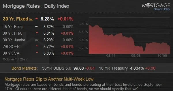 Mortgage rates are closely linked to the performance of bonds, especially those associated with mortgages. As of now, the bond market is showing its best performance since September 17th.