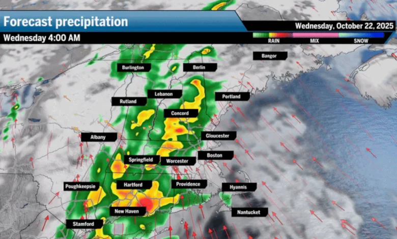 Expect scattered morning showers, with the potential for a rumble of thunder as the front moves through. Rainfall totals may reach about a quarter of an inch in Boston, while regions from Worcester to New Hampshire could see totals of half an inch to an inch. Despite the rain, the intensity is not anticipated to cause flooding, as the ground conditions in Northern New England remain dry.