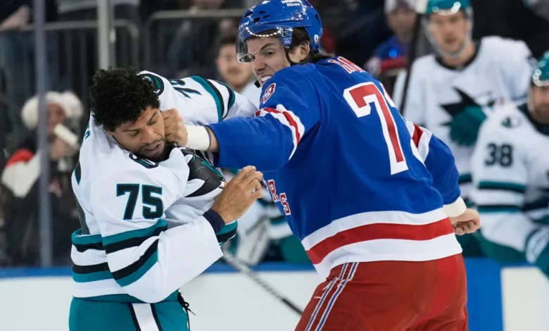 In a thrilling display of physicality at Madison Square Garden, Matt Rempe of the New York Rangers and Ryan Reaves of the San Jose Sharks engaged in a classic hockey fight. This event took place during a game on a Thursday night, capturing the attention of fans as it unfolded.