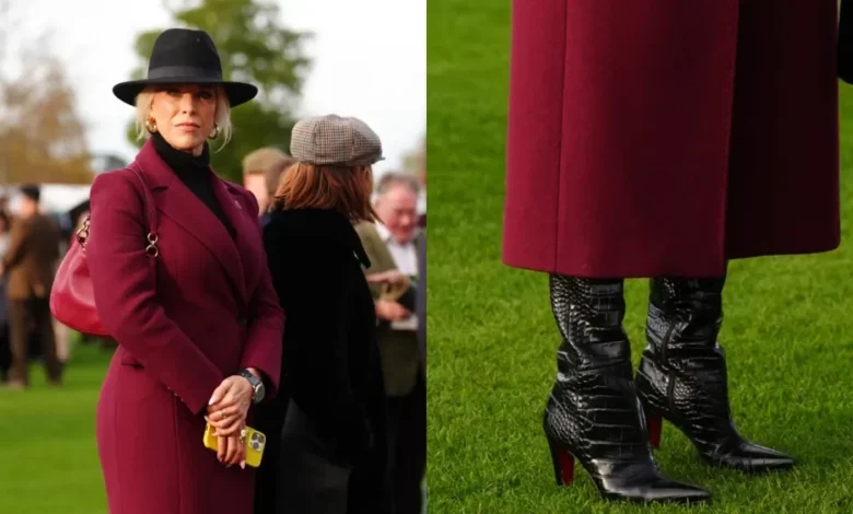 The British actress and singer showcased her style with a stunning pair of Christian Louboutin croc-embossed boots. Known for their luxury, these boots feature a sleek high heel, pointed toe, and an ankle-hugging design.