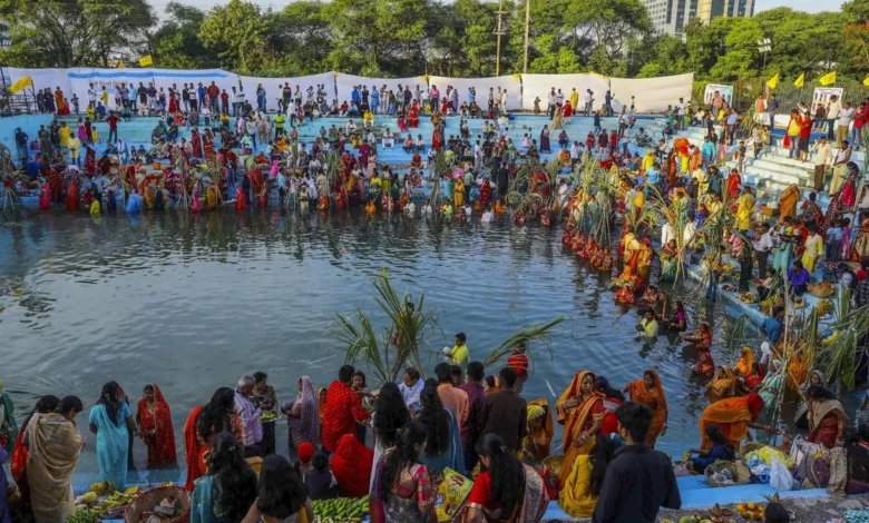 Hyderabad Devotees Embrace Chhath Puja’s Conclusion Despite Cloudy Skies