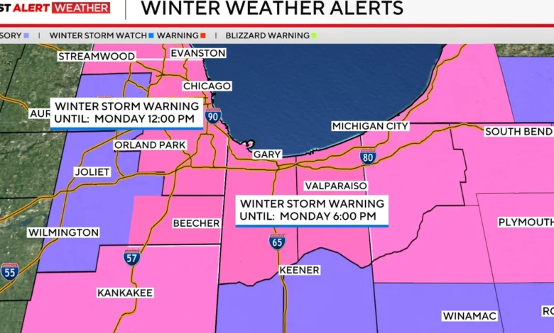 A Winter Storm Warning is now in effect for Chicago and its surrounding areas, signaling the onset of an unusual lake-effect snowstorm. This warning becomes effective at 9 p.m. on Sunday and remains in place until noon on Monday for Cook County and eastern Will County. Additionally, Kankakee County is included in the warning, while Lake and Porter counties in Indiana will be under alert until 6 p.m. on Monday.
