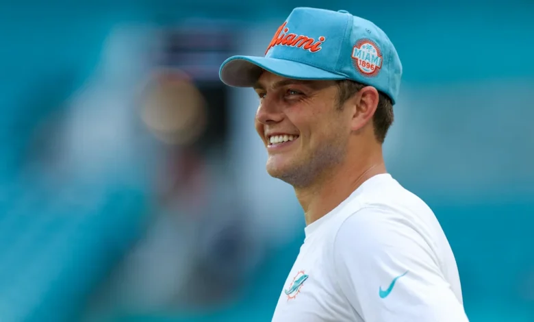 While Zach Wilson, the Dolphins’ third-string quarterback, did not play in the game, his wife, Nicolette Wilson, gained significant attention for her stylish game-day appearance. Zach joined the Dolphins after a stint with the Denver Broncos and has only managed to throw for 32 yards in limited opportunities this season.